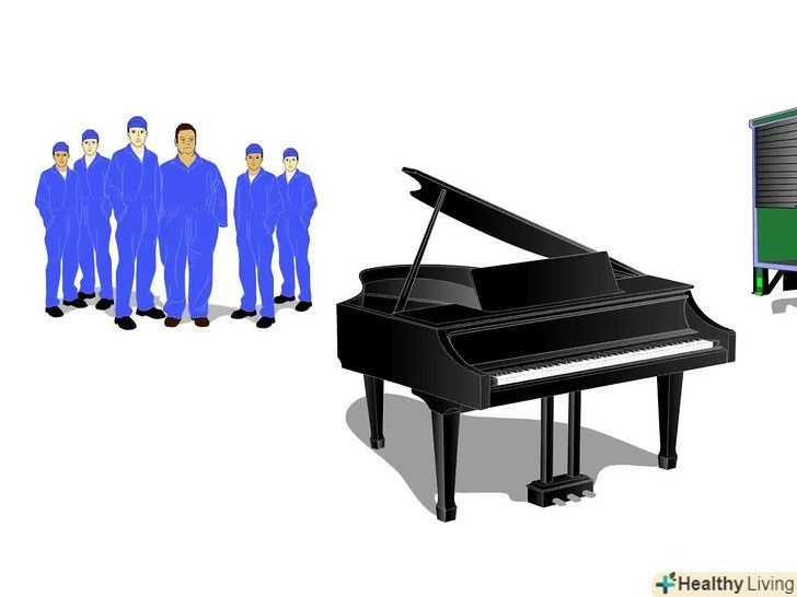 - Якщо піаніно несуть з дому у вантажівку, то заздалегідь відкрийте вантажівку і всі двері по дорозі до нього, і виносьте піаніно в першу чергу, раніше, ніж іншу легшу меблі, щоб у вас було більше місця в вантажівці для того, щоб повертати піаніно.