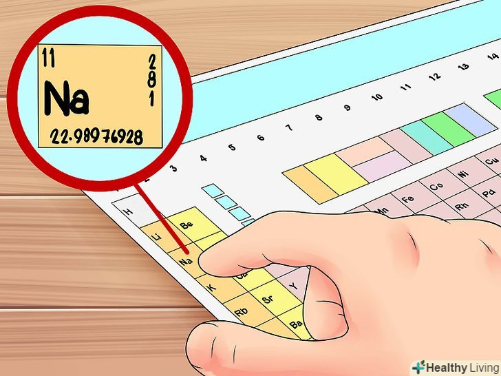 ВикористовуйтеПеріодичну таблицю хімічних елементів (таблицю Менделєєва). це певним чином розфарбована таблиця, кожна комірка якої містить назву хімічного елемента та іншу важливу інформацію, яку можна використовувати для визначення кількості валентних електронів у конкретному атомі. Таблицю Менделєєва можна знайти в підручнику з хімії або здесь.