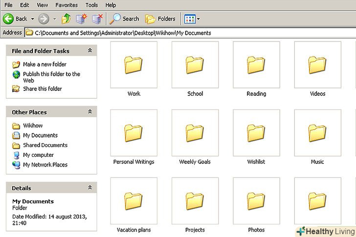 Складіть на комп'ютері 5-15 папок, щоб ваша віртуальна життя теж була впорядкована.наприклад: робота, школа, дослідження/читання, особисті записи, щотижневі завдання, музика, фотографії, нагадування.
