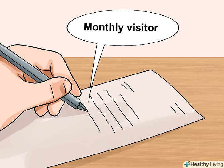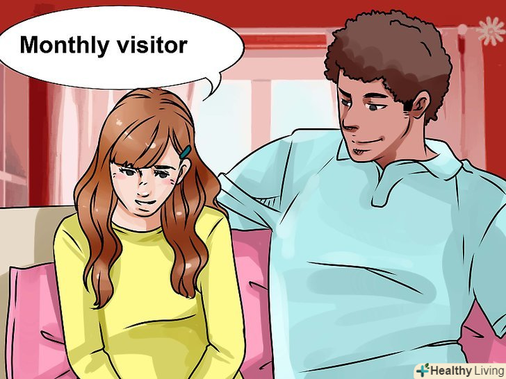 Спробуйте підібрати кодове слово, яке означало б менструацію.це допоможе зробити розмову менш незручною і навіть веселою.[3]- "гості з Красноярська"