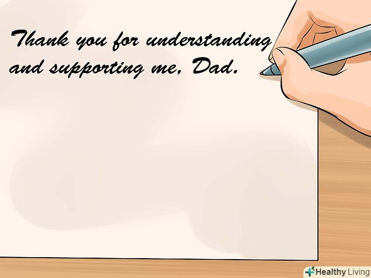Подякуйте папу за підтримку і турботу.повірте, він дуже хоче вам допомогти, тому що бажає для вас кращого.[6]- "спасибі, тату, що ти розумієш і підтримуєш мене".