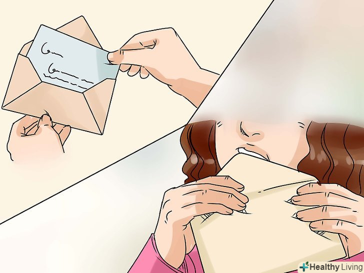 Покладіть лист в конверт і заклейте його.якщо ви вибрали невелику листівку і вирішили написати в ній, швидше за все, до неї вже додавався конверт.- Лизніть липкий край конверта, щоб заклеїти його, для цієї ж мети можна скористатися вологою губкою.