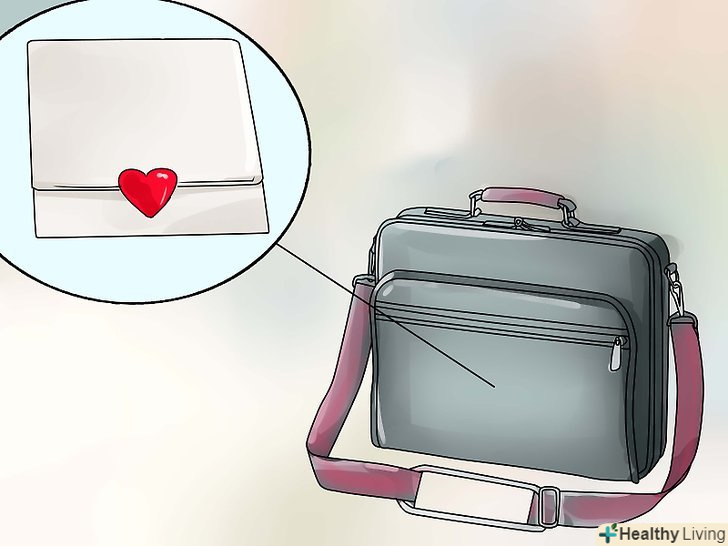 Залиште записку для тата на видному місці, де він відразу ж знайде її.Подумайте, в яких кімнатах він найчастіше буває, чим він найчастіше користується, наприклад, своїм портфелем або чохлом для ноутбука.- Якщо ви живете не одні, не варто залишати записку на якомусь видному для всіх місці, інакше хто-небудь інший може знайти і прочитати ваше послання.