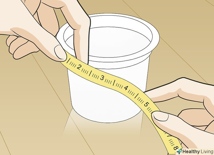 Виміряйте окружність пластикових стаканчиків (вони повинні бути однаковими).найкраще для цієї мети використовувати ганчір'яну мірну стрічку. Розділіть отриману довжину на три, оскільки вам потрібно буде зробити у верхній частині стаканчиків три отвори.- Наприклад, якщо довжина кола стаканчика становить 15 сантиметрів, вам потрібно позначати місця для отворів через кожні 5 сантиметрів.