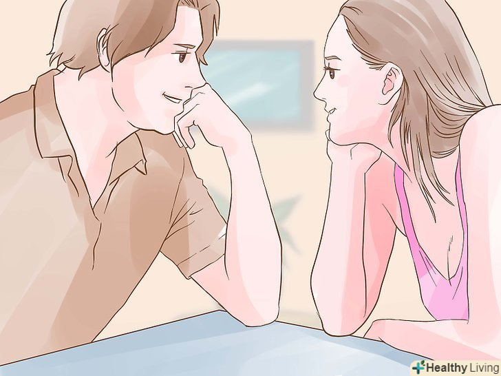 Слухайте з метою зрозуміти.більшість людей слухають співрозмовника, щоб підготувати свою відповідь. Завжди прагніть зрозуміти, що партнер намагається сказати вам. активно слухайте і задавайте питання. Звички, які допоможуть вам уважно слухати:[8]- Поверніться обличчям до партнера і встановіть зоровий контакт або сядьте збоку і час від часу поглядайте на партнера, якщо соромитеся дивитися в очі.