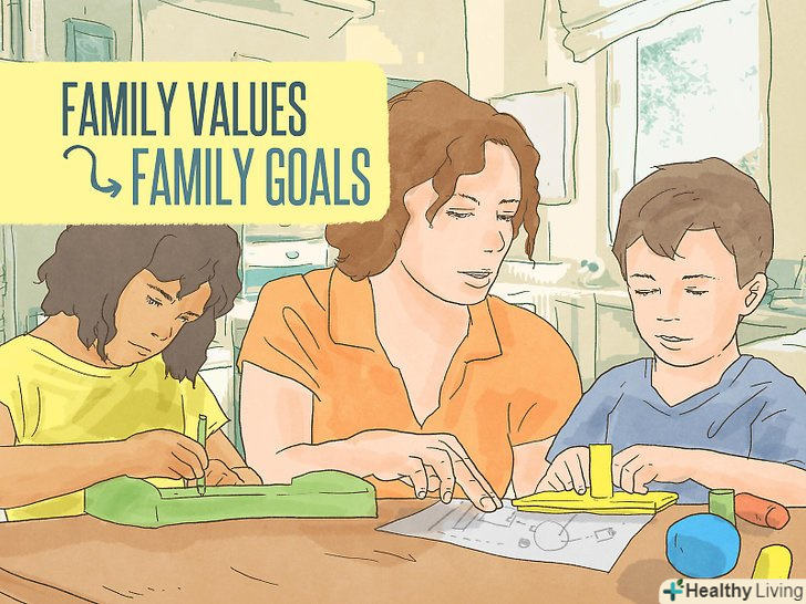 Використовуйте сімейні цінності для роботи над сімейними цілями.цінності важливі, тому що вони допомагають робити вибір і діяти. Під час роздумів про сімейні цінності корисно також брати до уваги і сімейні цілі. Ваші цінності, швидше за все, відіграють велику роль у досягненні цих цілей.- Чи є освіта однією з ваших сімейних цінностей? Подумайте про переведення цієї цінності в конкретну мету. Подумайте про кроки, які можна зробити, щоб зосередитися на освіті в сім'ї. Наприклад, можна всім разом вивчити нову мову або взяти уроки кулінарії. Це дозволить об'єднати сімейні цінності і цілі.