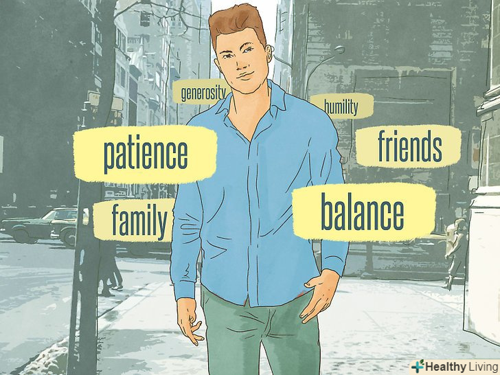 Визначте свої сімейні та особисті цінності.цінності одночасно важливі і індивідуальні, але мало хто, насправді, вибирає власні варіанти. Замість цього більшість людей слідує цінностям, яким їх прищепили в дитинстві. Щоб проаналізувати свої цінності, подумайте про своє дитинство і визначте, які підвалини ви ввібрали.[1]- Подумайте про конкретні цінності. Наприклад, чи цінували ваші батьки релігію, освіту чи багатство? Наскільки це вплинуло на вас в період формування особистості?