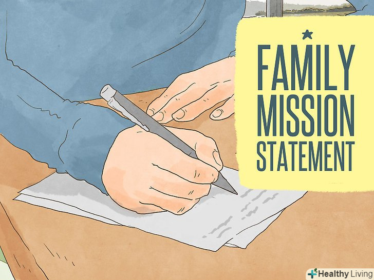 Сформулюйте місію.після аналізу цінностей і обговорення їх з сім'єю, вам слід виробити гарне уявлення того, як визначити свої сімейні цінності. Один із способів закріпити їх-це сформулювати місію. Це документ, який позначає ваші сімейні цінності. Сюди також можна включити цілі. Місія-це офіційна заява цінностей, які ви поділяєте як сім'я.[6]- Запишіть, яке призначення вашої родини і яка стратегія, щоб переконатися, що ви як і раніше зосереджені на цій меті.