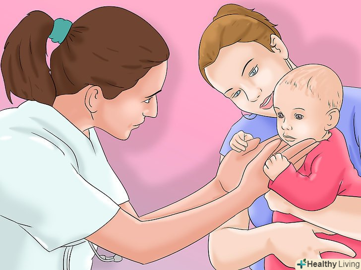 - Перевірте пульс вашої дитини, чіткість і фокусування очей, шкіру або жир, які можна злегка вщипнути на руках і ногах малюка, не зачіпаючи кістки, а також кількість м'язів, які розвинув ваша дитина на ногах, руках, сідницях і шиї. Якщо що-небудь викликає у вас занепокоєння, зверніться до друга або родича, або проконсультуйтеся з медичним працівником по телефону.