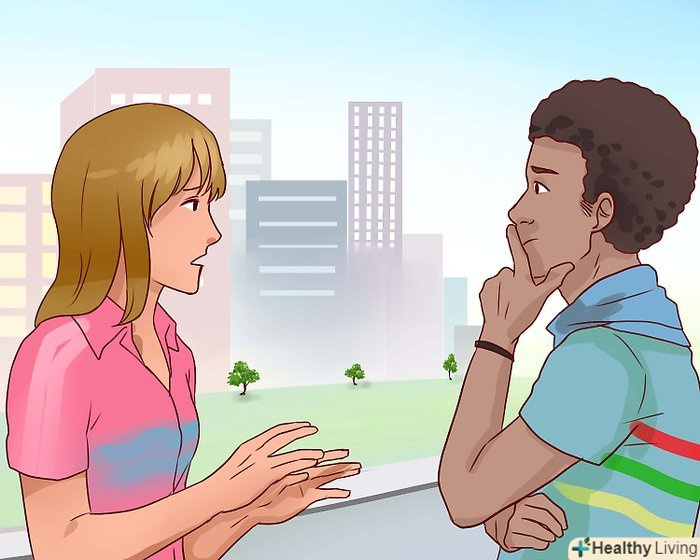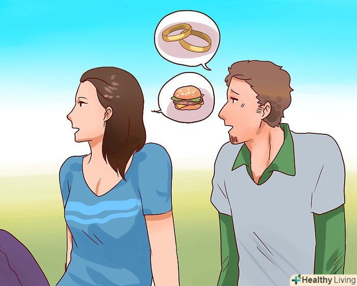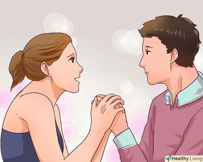 Розкажіть про свої почуття.наодинці, коли перший момент образи вже пройде, детально поясніть партнеру, що сталося. Зробіть акцент на тому, що ваші відносини все так само багато значать для вас. Розкажіть, чому ви виявилися не готові прийняти пропозицію. Кохана людина не повинна думати, що він для вас недостатньо хороший.- Якщо ви сумніваєтеся в самих відносинах, а не тільки в шлюбі, будьте чесні. Можливо, це не найкращий момент, щоб висловлювати претензії, але дайте партнеру зрозуміти, що між вами є проблеми і їх потрібно обговорити, як тільки ви обидва заспокоїтеся.
