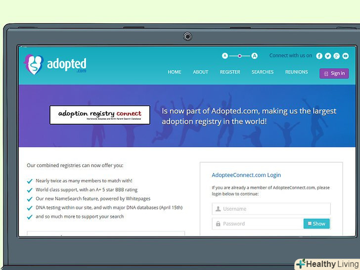 Пошукайте інформацію на сайтах, що публікують реєстри про усиновлення або возз'єднання сімей.подібні Сайти дозволяють батькам і усиновленим дітям розміщувати свою інформацію. Спілкування там може допомогти вам встановити контакт з батьком.[2]