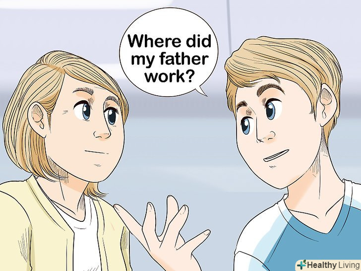 Задавайте питання.ця зустріч-шанс отримати відповіді на питання про самого себе. Може бути, вам хочеться дізнатися щось про життя свого батька або про його батьків.- Наприклад, можна сказати: "мені здається, тільки я в родині люблю математику. А ти любиш математику? Може бути, це у мене з твого боку?”