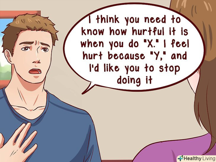 Підкреслюйте свої образи.поясніть, який біль вам приносять її дії і постарайтеся дати їй зрозуміти ваші емоції. Постарайтеся не сердитися і не проявляти агресію.- Говоріть повільно і усвідомлено.