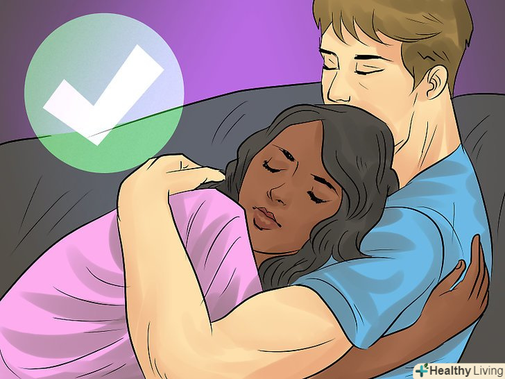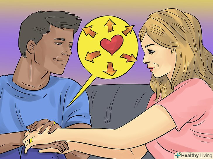 Знайдіть час для фізичної близькості.у період, коли ви намагаєтеся подолати почуття образи в шлюбі, не уникайте один одного. Відчуваючи хворобливі почуття, ви можете перестати торкатися один до одного, обніматися і займатися сексом один з одним. Але це неправильно. Навпаки, фізична близькість допоможе вам сфокусуватися на подоланні почуття образи.[12]- Якщо раніше поцілунки і обійми були для вас чимось природним, то зараз вам, можливо, доведеться робити це усвідомлено.
