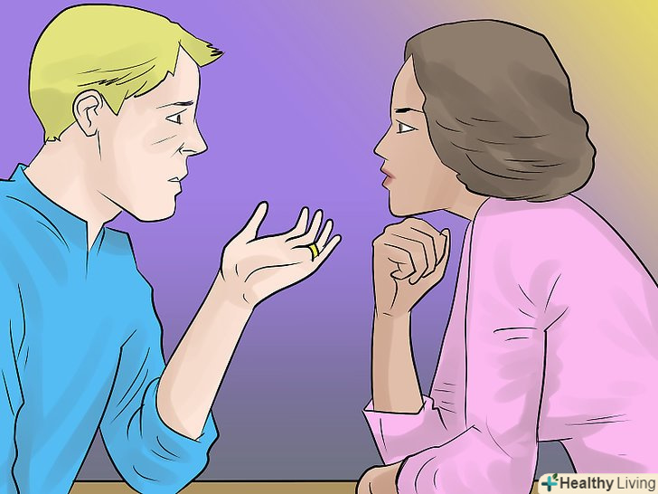 Зверніться за допомогою до фахівців.якщо ви помітили, що не можете розмовляти зі своїм партнером або ваш партнер не чує вас, можливо, Вам варто звернутися до сімейного психолога по шлюбно-сімейних відносин або до психотерапевта. Спеціаліст може допомогти вам і виступити в ролі посередника між вами і вашим чоловіком. Крім того, він допоможе вам обом чітко висловити те, що вам складно одягнути в слова, і направить вас у бік вирішення проблеми.[6]- Навіть якщо ваш партнер не хоче йти на консультацію до фахівця, ви можете звернутися за допомогою в поодинці, щоб вам допомогли розібратися з проблемами у вашому шлюбі.