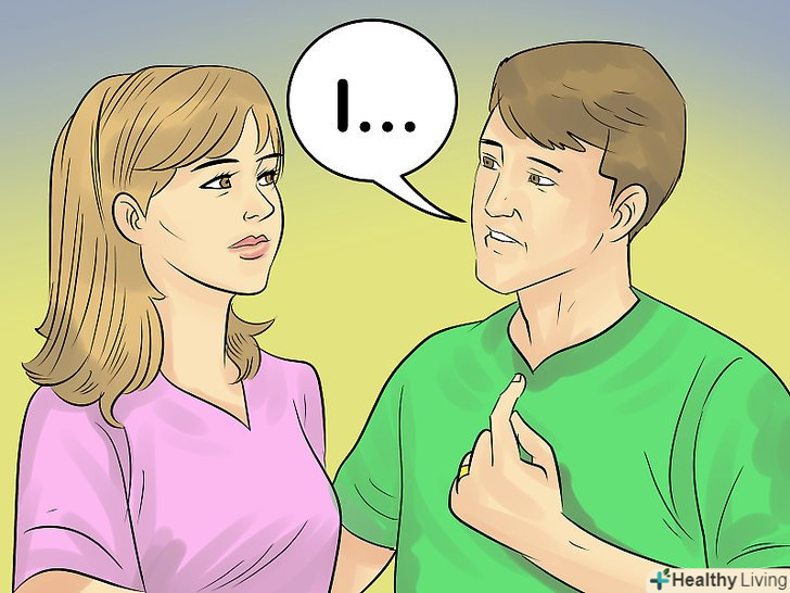 Використовуйте висловлювання від першої особи.під час обговорення проблеми у вас може виникнути бажання звинуватити свого партнера. Як правило, це призводить до ще більших проблем, злості і образ. У розмові зі своїм чоловіком говорите тільки від першої особи. Це допоможе вам уникнути звинувачень свого партнера у всьому.[7]- Наприклад, можна сказати: "я відчуваю себе пригніченою і засмученою через постійне безлад в будинку. Мені потрібна допомога. Я сама з усім не справляюся".