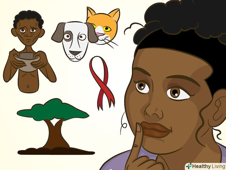 Спробуйте зайнятися волонтерством.почуття мети і хороші соціальні зв'язки з іншими людьми-це ще один чудовий спосіб відчути себе щасливим.[5] оскільки волонтерство подарує вам почуття мети в житті і дозволить поспілкуватися з однодумцями, воно може допомогти вам відчути себе більш щасливим.- Спробуйте знайти організацію, в роботу якої ви хотіли б внести свій внесок. Можна, наприклад, подати заявку на волонтерську роботу в притулку для тварин або в благодійному продовольчому фонді. Можете навіть запитати свого партнера, чи не хоче він зайнятися волонтерством разом з вами, це може стати хорошим заняттям для зміцнення відносин між вами.