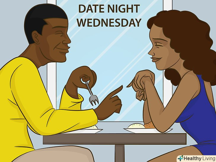 Приділяйте час тому, щоб побути разом.коли ви приділяєте час один одному, ви як би висловлюєте свою відданість один одному. Домовтеся, що щотижня будете проводити один з одним певний час, і дотримуйтесь цю домовленість. Це також дасть вам можливість заново пізнати один одного.[7]
