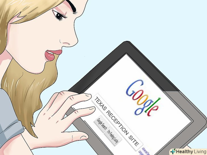 Знайдіть місце для прийому гостей в Техасі, достатнє для кількості гостей у вашому списку.- Посібник з варіантів місць для прийому гостей є на сайтіhttp://www.gatheringguide.com/event_directory/rc/tx_texas/evl_event_venues.html.#* подивіться наявні варіанти місць для прийому гостей в районі Х'юстон на сайті http://www.wedalert.com/local_wedding_services/texas/houston.asp.