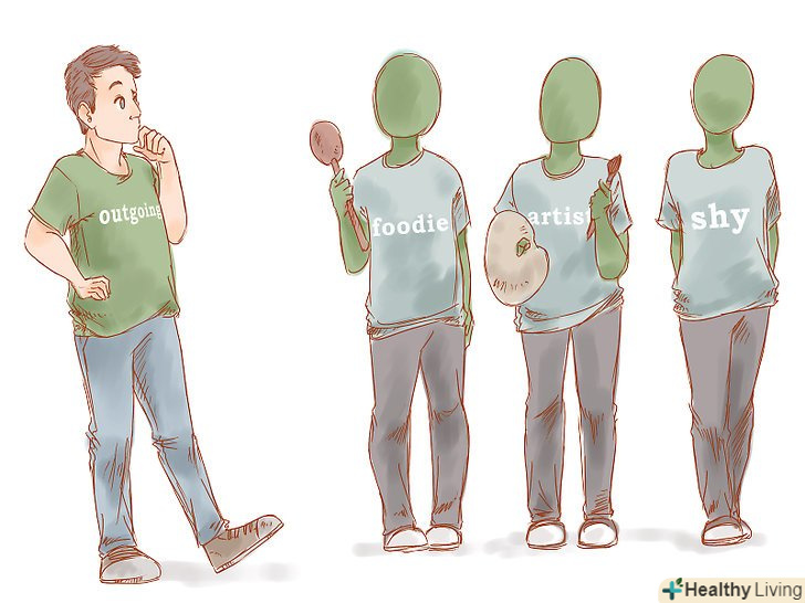 Знайте себе. хто ви? Ви впевнені в собі, скромні, хоробрі, обережні, розумні, схильні до навчання, захоплені, пасивні, чутливі, жорсткі? Вирішити, які риси вас приваблюють в протилежному полі, набагато простіше, якщо ви знаєте, який ваш характер. Хтось, хто справляється з емоціями і конфліктами так само, як і ви, підійде вам більше, ніж хтось, хто реагує зовсім інакше. На цьому етапі ви поринете в себе, оскільки любов до себе - це обов'язкова умова любові до когось ще. Складіть список своїх рис характеру і якостей так, як ви сприймаєте їх. Не поспішайте - ви можете відкласти список і повернутися до нього кілька днів по тому.- Списки рис характеру і людських якостей можна знайти в підручниках з психології і книгах про вибір кар'єри. Переглядаючи такі списки, вам буде простіше розібратися в собі і зрозуміти, які риси властиві саме вам. Але не приписуйте собі риси, якими ви хотіли б володіти, оскільки це не буде відображати вашу суть.