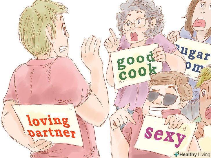 Зрозумійте, навіщо ви шукайте партнера.Подумайте про причини, які спонукають вас шукати собі пару, і переконайтеся, що зараз відповідний час для близьких відносин. Пам'ятайте, що під час таких пошуків інші люди можуть чинити на вас вплив або тиск, наприклад, родичі або брати і сестри, а також друзі і соціальні установки. Не втрачайте це з виду, оскільки рішення повинно бути прийнято під впливом лише ваших бажань, а не через підміну потреб і бажань чужими очікуваннями. Перш ніж вступити у відносини, переконайтеся, що ви обидва висловлюєте свої бажання, а не підкоряєтеся очікуванням інших людей. Зрештою, саме вам потрібно буде спілкуватися з цією людиною, а не оточуючим.- Наприклад, друзі або родичі, які Вам бажають добра, можуть підштовхувати вас до відносин, тим самим позбавляючи вас можливості думати самостійно. У спробі догодити їм Ви можете втратитисебе. Пам'ятайте, що ваші батьки, друзі та інші люди - це не ви. Заводите відносини тільки тоді, коли ви самі будете відчувати, що готові до цього.
