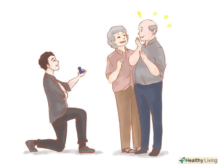 Якщо її батьки трохи старомодні, а вона не прийме це як образу, ви можете попросити руки і серця вашої коханої у батьків. хоча, багато хто вважає старомодним питати дозволу у батька нареченої, але цей вчинок безумовно може виявитися не зайвим і буде вважатися жестом поваги з Вашого боку по відношенню до сім'ї нареченої і буде показувати, що ви завжди будете уважні і тактовні до її рідних. Це також знак ввічливості, хіба її сім'я буде заперечувати? Але знову таки, це дійсно залежить від дівчини і ситуації в її родині, так що гарненько промацайте грунт.- Поставте її на перше місце, тобто все, що зараз важливо для неї і її сім'ї. Може бути, є що-небудь, що може дратувати її? Може, вона не живе разом зі своїми рідними. Ловіть її сигнали, грунтуючись на знаннях її ситуації і переваг. До цього моменту ви вже повинні знати її досить добре.
