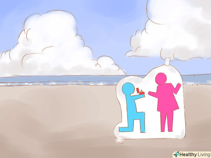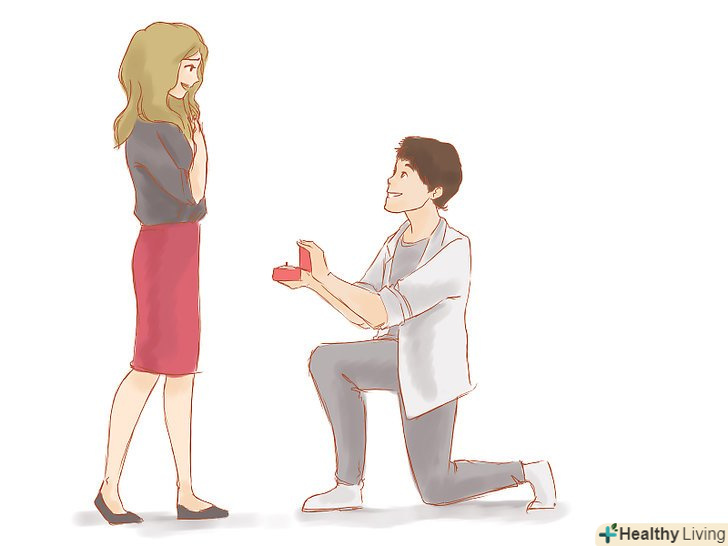 Будьте впевнені, наскільки можна, що вона скаже "так".хоча і неможливо стовідсотково передбачити це, у вас повинно бути сильне почуття, що ваша дівчина любить вас і хоче провести залишок життя саме з вами. Подумайте, чи робила вона натяки, що хоче вийти за вас заміж, що хоче жити з вами, мати дітей, що хоче, щоб ви стали частиною її сім'ї і т. д. якщо вона ніколи не згадувала цих речей, тоді можна спробувати завести з нею розмову, щоб вловити напрямок її почуттів; якщо вона відчуває себе не в своїй тарілці і переводить розмову на іншу тему, тоді вона може бути неготовою до одруження.- Якщо ви разом всього лише пару місяців, переконайтеся, що вона готова до тривалого «шляху». Хоча багато щасливі сімейні пари побралися всього через пару місяців відносин, проведіть більше часу зі своєю коханою, щоб переконатися, що Ви створені один для одного і тоді вона найімовірніше скаже «так».