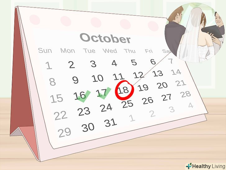 Виберіть місце.найбільш релігійні напевно захочуть влаштувати вінчання в церкві, але якщо ви зі своєю партнеркою вибрали громадянську церемонію, це не означає, що у вас не було варіантів. Крім церков і залів, які можна орендувати, також можна вибрати і міські парки, родові маєтки і навіть Круїзні лайнери. Люди вінчаються навіть під час стрибків з парашутом! Обговоріть витрати і особисті цінності зі своєю коханою і виберіть місце, яке підійде вам обом.