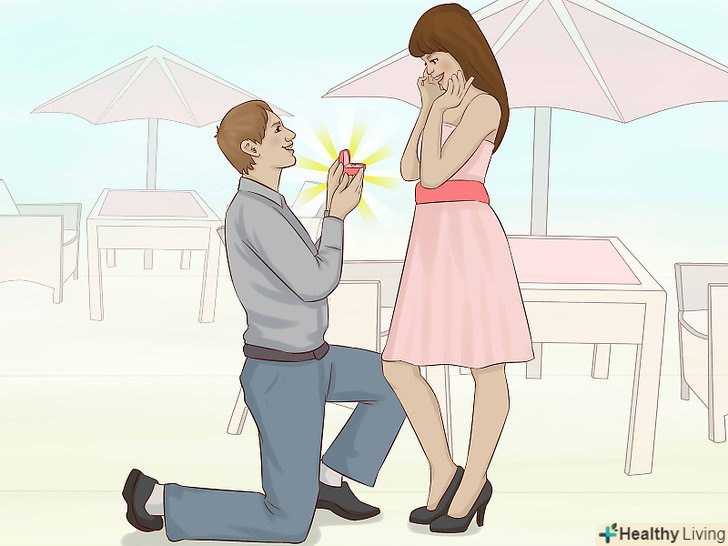 Попросіть вашу кохану вийти за вас заміж.почніть разом свій день, з добре захованим кільцем. Будьте найкращим і підтримуйте у неї найщасливіший і яскравий настрій. Коли прийде час, опустіться на одне коліно перед вашою коханою, витягніть кільце і скажіть свою промову. Якщо пощастить, то ви почуєте гучне " ТАК!».- Зробіть пропозицію в громадському місці. Присутність свідків доведе вашій коханій, що ви готові з нею одружитися, і неважливо хто про це знає і що люди думають про це. Оточуючим також сподобається вистава.
