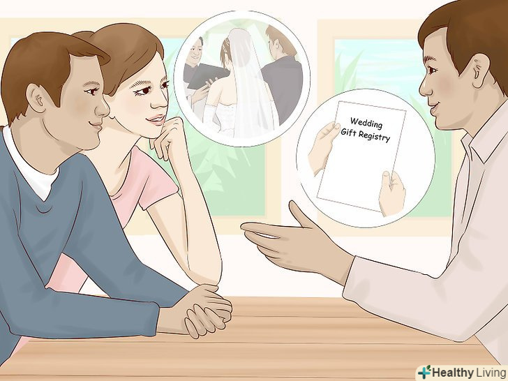 Почніть планувати весілля.все пройшло вдало і ви вже заручені, так що не втрачайте часу і починайте планувати церемонію і медовий місяць. Навіть для найменшої цивільної церемонії потрібен час і місце. Більшість людей захочуть більш формальну церемонію, ніж релігійна або громадянська, для якої необхідно дуже багато зусиль з планування і купа грошей. Якщо хочете, щоб люди принесли вам весільні подарунки, не забудьте скласти список бажаних подарунків.- Плануйте весілля зі своєю коханою. Можете також залучити батьків і законних опікунів. Найімовірніше вони будуть раді допомогти в плануванні і покритті витрат на весілля.