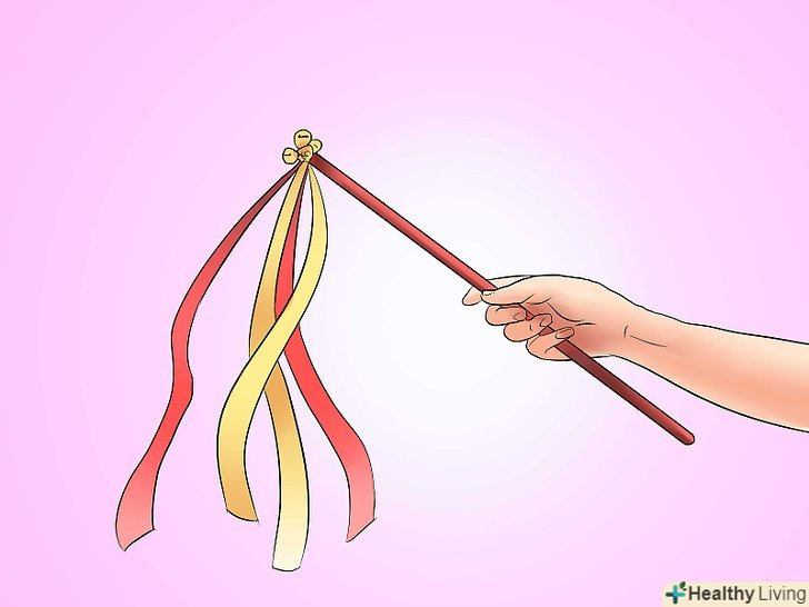 Прикріпіть стрічку до палички.використовуйте вибраний вами метод, щоб прикріпити стрічку до палички.