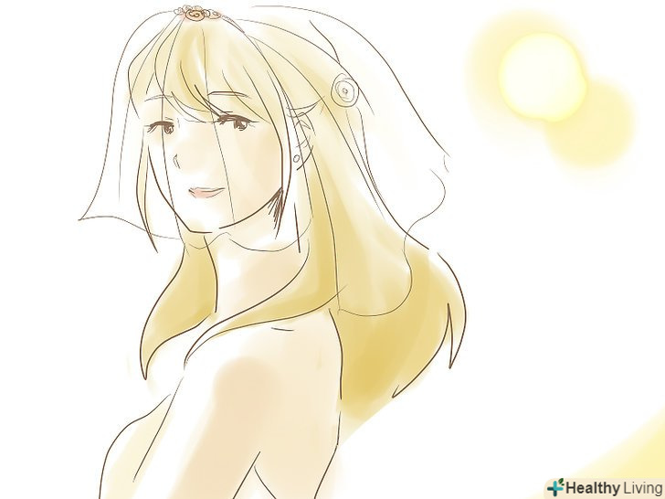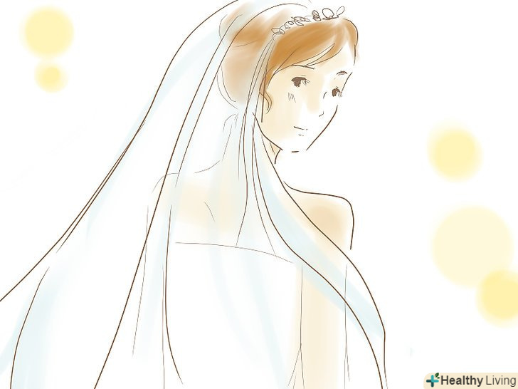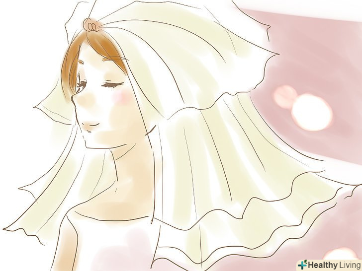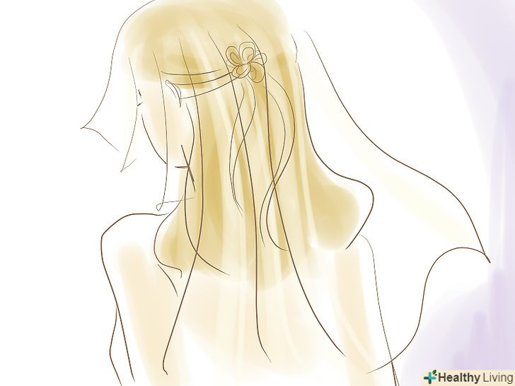 - Однак якщо у вас довге волосся і ви хочете показати майстерно зроблену високу зачіску, то вам потрібно буде розташувати фату подалі від передньої частини. Широка фата зазвичай надівається у напрямку до передньої частини голови і фата, яку не потрібно збирати, краще виглядає на задній частині голови. Вашу фату можна прикріпити гребенем або шпильками в поєднанні з тіарою, короною або пов'язкою на голові. Найкраще купити фату завчасно до весільної дати, таким чином, ви зможете випробувати її на вашому волоссі.