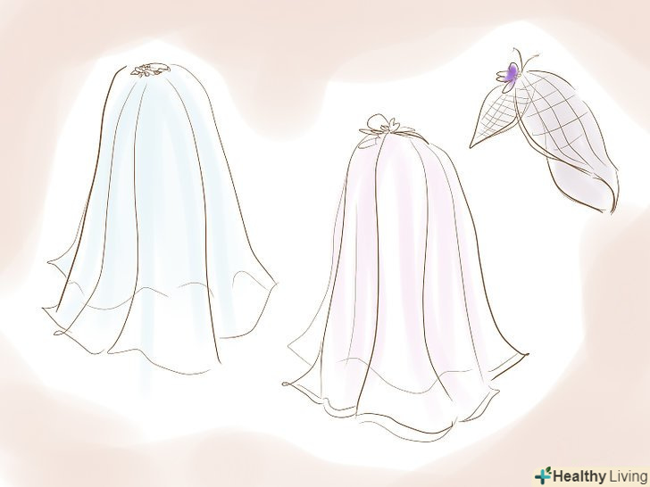 Візьміть до уваги різну довжину.- Дуже коротка фата, наприклад, вуалетка, не розтягується далі підборіддя. Вуалетки нагадують легкі мереживні накидки для голови, які носять при верхових скачках. Якщо ваше весільне плаття має високу шийну частину, то цей тип фати відмінно підійде. Вона створить хороший образ в парі з витонченим або еклектичним стилем весільних суконь.