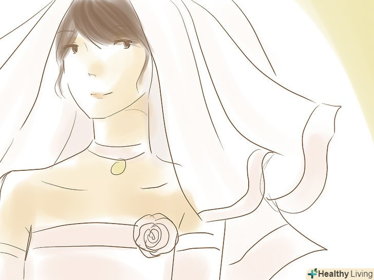 Виберіть тип обробки фати, якщо він вам потрібен.фата може закінчуватися в найрізноманітніших формах. Вам потрібно вибрати обробку країв, які будуть виглядати зі стилем Вашого сукні. Якщо ваше плаття досить просте, то, можливо, ви захочете вибрати більш декоративний край. Структуровані сукні, як правило, добре виглядають з товстими стрічковими краями. М'які, романтичні сукні відмінно виглядати з просто обрізаними краями. Також, хороша ідея тонко зімітувати будь-яку з деталей Вашого плаття.