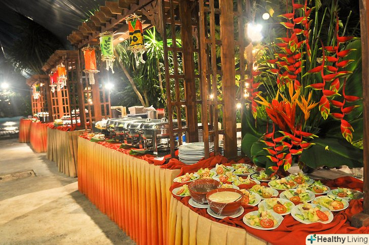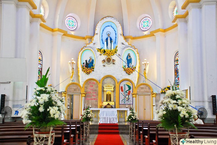 Враховуйте художнє оформлення. Подивіться на кольори, використовувані на килимах в місці зустрічі гостей, в драпіровці і художніх оформленнях. Якщо це місце буде в яскравих кольорах, то вам потрібно вибрати колірну гамму, для якої все це буде служити доповненням. Якщо у вас серце лежить до певного кольору, ви, можливо, повинні вибрати не настільки строкато прикрашене місце, але з цим потрібно визначитися з самого початку, інакше ви можете втратити хороше місце розташування. Однак поки ви ще не вибрали місце зустрічі, не ставитеся до квітів упереджено, тому що декорації цілком можуть підштовхнути вас до певної колірної схеми.- У більш старих будівлях можуть перебувати дуже багаті, фіранки і килими з надлишком візерунків на них. З обережністю ставтеся до них, тому що вони можуть погано поєднуватися з рештою колірною гамою.