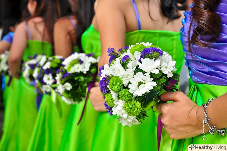 Пам'ятайте про сукні подружок нареченої.якщо вам хочеться, щоб подружки нареченої були з голови до п'ят одягнені в наряди вашого улюбленого кольору, вам потрібно буде переконатися, що це дуже привабливий відтінок, який насправді прикрасить їх. Вам, можливо, доведеться прийняти варіації відтінків, щоб задоволеною була кожна подружка нареченої, особливо якщо від нього не в захваті одна або кілька з них.