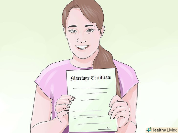 Отримайте свідоцтво про шлюб.З'ясуйте, які документи потрібні для заяви реєстрація шлюбу. Можливо, вам і вашому партнерові буде потрібно копія свідоцтва про народження? Чи є у вас копія, завірена нотаріусом? З'ясуйте, що саме потрібно для отримання завіреної копії та оригіналу з підписом. Чи потрібна вам копія рішення про розірвання попереднього шлюбу? Вам потрібно зв'язатися з відділом реєстрації актів цивільного стану, де був оформлений ваш розлучення.