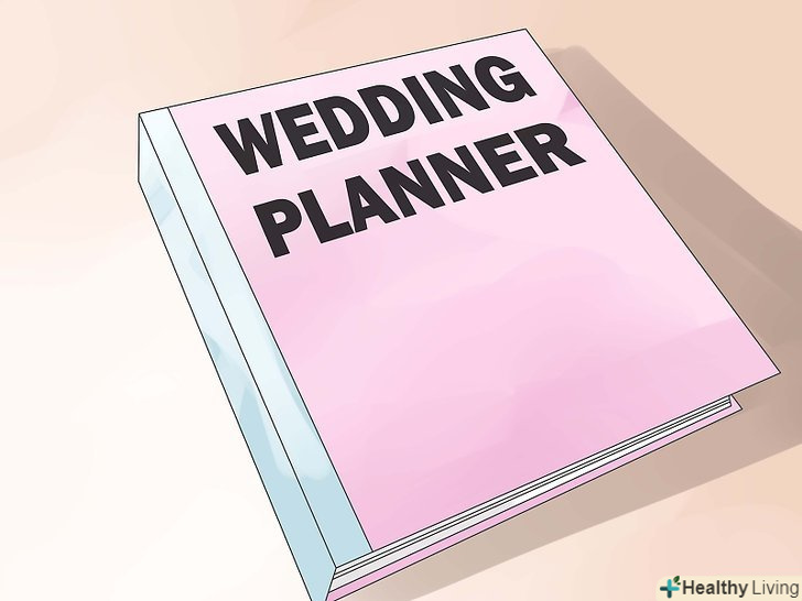 Придбайте книгу для планування весілля, або самостійно виготовте її.переконайтеся, що всередині є календар і кишеньки для буклетів і вирізок. Така книга допоможе вам упорядкувати власні ідеї і зберігати всю інформацію в певному місці. Запишіть імена постачальників, з якими заплановані зустрічі. Не забудьте вказати місце і дату зустрічі. Також можна докласти зразки тканин і фотографії квітів, щоб показати їх флористу.- Почніть планування, як тільки ви визначитеся з датою весілля! Якщо ви з самого початку про все подбаєте, у вас буде більше часу насолодитися заручинами і звернути увагу на незначні нюанси (наприклад, колір запрошень).