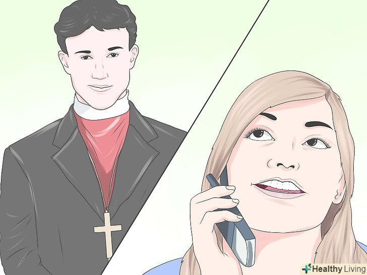 Зв'яжіться зі священиком, який проводить церемонії одруження. представники певних релігій і конфесій, по всій видимості, захочуть зустрітися з вами і вашим майбутнім чоловіком до весілля, щоб обговорити Шлюбні клятви, проведення церемонії та інші деталі. Чи не відтягуйте все до останньої хвилини. Зі священиком можна домовитися заздалегідь, але вони, як правило, проводять кілька церемоній в день. Необхідно правильно розподілити час, якщо ви хочете, щоб церемонію вів обраний вами священик. Якщо ви не можете домовитися, попросіть помічника пастора, щоб він порекомендував вам когось іншого.
