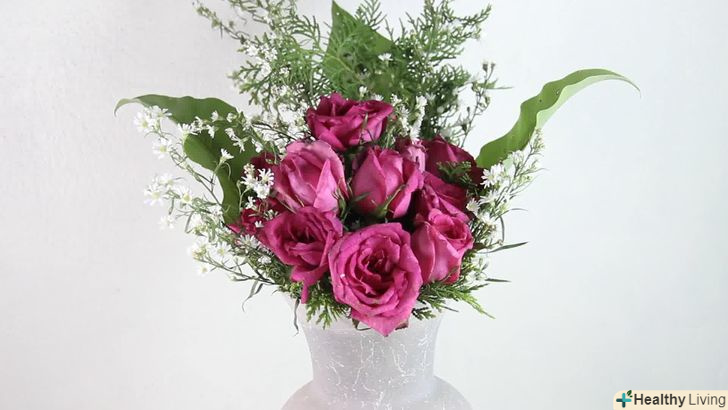 - Зберігайте квіти в холодильнику при температурі вище 1,7 ºC, якщо у вас немає прохолодної кімнати, Зберігайте квіти в холодильнику при температурі вище (17 ºC. Приберіть всі фрукти з холодильника, так як більшість з них виділяють гази, що сприяють швидкому в'яненню квітів.[10]
