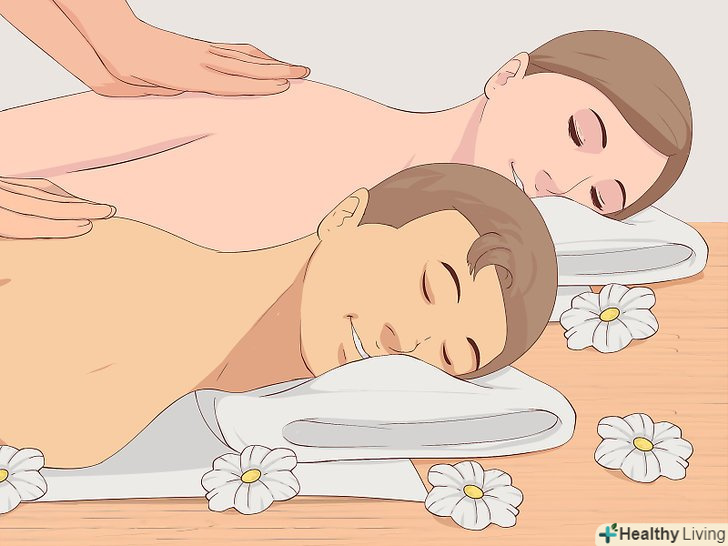 Присвячуйте час своєму нареченому.не дозволяйте планування весілля приносити напругу у ваші стосунки. Знаходьте час, щоб разом позбутися стресу. Це може навіть бути щось зовсім просте, наприклад, спільна прогулянка з собакою або похід в спа-салон.[16] Так чи інакше, ваш наречений буде залишатися таким вже недовгий час, так що насолоджуйтеся цим періодом.- Приділіть час тому, щоб себе побалувати. З усіма турботами весільного планування, роботи та інших аспектів вашого життя, можна легко упустити рахунок часу. Якщо ви помічаєте, що занадто зайняті, щоб вписати відпочинок і розваги в свій графік, то впишіть їх обов'язково. Заздалегідь виберіть день і присвятіть його спільній розвазі, забувши на цей час про весілля.
