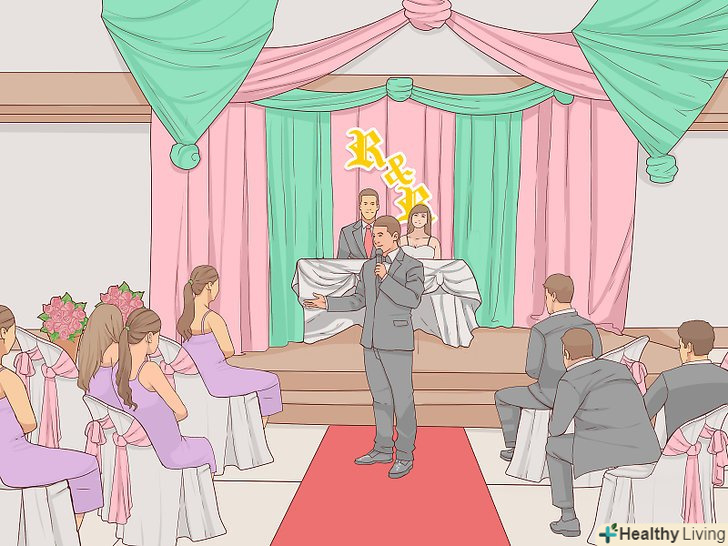 Заохочуйте гостей брати участь у процесі.Весільна мова-це час, коли ви можете відпочити і розслабитися, від душі посміятися або поплакати і, сподіваємося, отримати незабутні сюрпризи. Не соромтеся попросити гостей вимовити свої тости. Це вірний спосіб дати гостю відчути себе цінним.[17] але не варто також обмежувати участь гостей тільки промовою і тостами. Перед цим особливим днем попросіть когось близького підготувати особливий танець, заспівати пісню або зробити слайд-шоу.- Будьте обережні, не тисніть на гостей. У той час як деякі гості можуть відчувати себе комфортно при публічних виступах, деяким вони можуть бути некомфортні. Примусова мова-це невдала мова, яка в кінцевому підсумку обернеться незручністю для вас, нареченого і гостей.