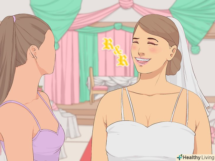Розслабтеся і відпочиньте.коли цей день настав, дихайте і розслабтеся. Ви планували цю подію протягом декількох місяців, так що краще покуштуйте цього дорогого вина і цих дорогих страв. Покрутіться серед гостей і з'їжте ще один шматок торта. Не турбуйтеся ні про що, не піддавайте себе стресу, так як завтра все вже закінчиться.- Не переживайте з приводу дрібниць. Можливо, під час весільної фотосесії пішов дощ або гаряче винесли пізніше покладеного. Намагайтеся не роздумуватися через тих питань, які ви не в змозі контролювати. Це може зіпсувати вам настрій, а ви ж не хочете ходити незадоволеною в день свого весілля.