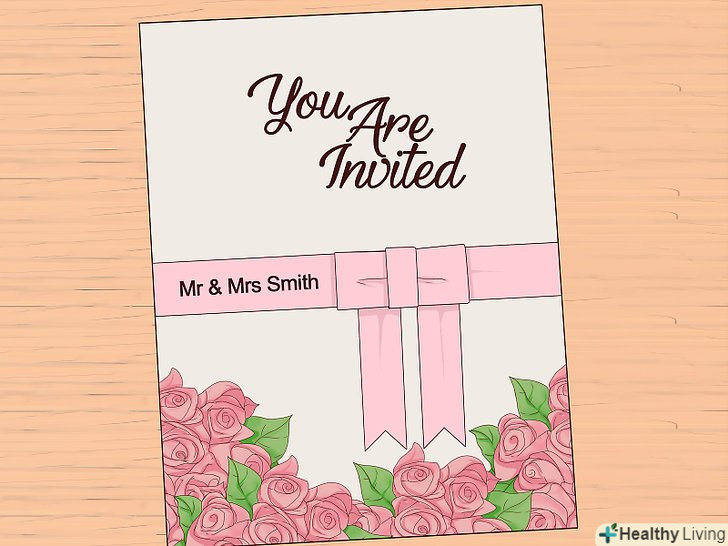 Розішліть запрошення.щоб уникнути потенційних незручних моментів, обов'язково вкажіть в запрошеннях Імена тільки передбачуваних гостей. Наприклад, якщо ви не запрошуєте дітей, напишіть в запрошенні тільки імена батьків, а не "дорога сім'я Іванових". Це дає чітко зрозуміти, хто запрошений.- Включіть чіткі інструкції про те, як дати вам відповідь на запрошення. Ці інструкції повинні включати крайню дату відповіді і спосіб відповіді. Можна разом із запрошенням розіслати готові конверти з марками для відповіді, можна створити електронну картку для відповіді, щоб зберегти свій час і час своїх гостей.