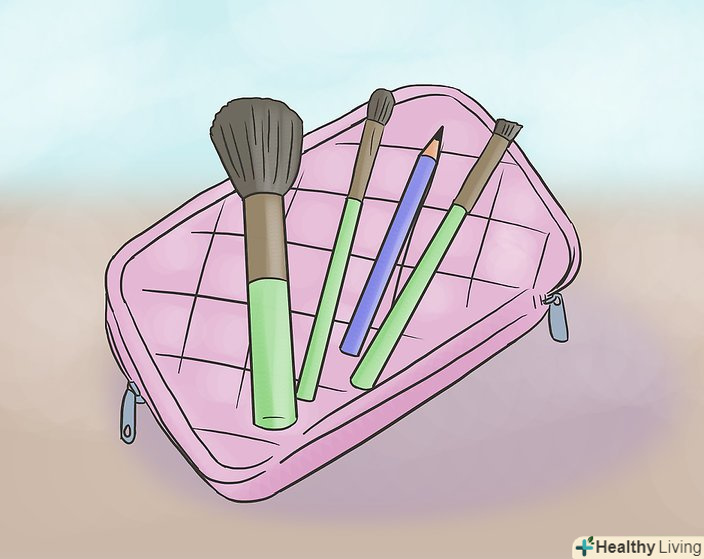У косметичку ви повинні покласти напівпрозору пресовану пудру, туш для вій, 1 або 2 види тіней для повік, якщо ви плануєте йти в кафе, рум'яна.не беріть основу під макіяж або тональний крем, так як ваш тон шкіри зміниться.