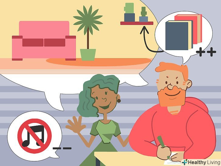 Сядьте і складіть список того, що, на ваш погляд, найбільше створює шум і суєту у вашому домі.це те, з чого вам належить почати в першу чергу. Подумайте про те, щоб скоротити прийом відвідувачів, знизити рівень гучності телевізора і обмежити час використання комп'ютера. Крім того, забороніть маленьким дітям бігати по дому.- Дітям потрібні розваги та іграшки, але це зовсім не означає, що їм потрібно дивитися телевізор або грати у відеоігри. Заведіть традицію грати в настільні ігри. Вкладення в подібні традиційні сімейні ігри можуть виявитися набагато скромніше, ніж зміст ТБ або ігрової консолі.