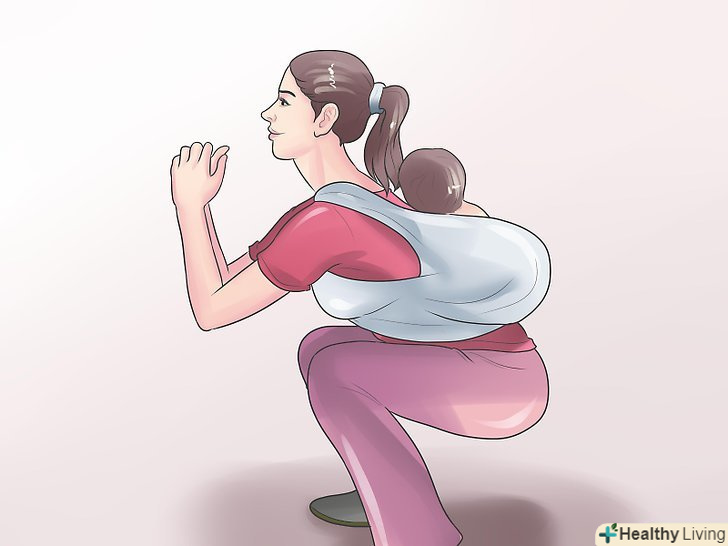 Робіть вправи, в які можна залучити дитину.якщо у вас виникли проблеми з пошуком вільного часу для тренувань, знайдіть спосіб робити це з дитиною. Гра з малюком може стати частиною тренування! Є спеціально розроблені тренування, які можна робити з дитиною, але ви також можете робити і менш специфічні вправи.- Використовуйте дитячу сумку, щоб тримати дитину і робити присідання, випади або інші подібні рухи. Це буде корисно для вас і весело для вашого малюка.