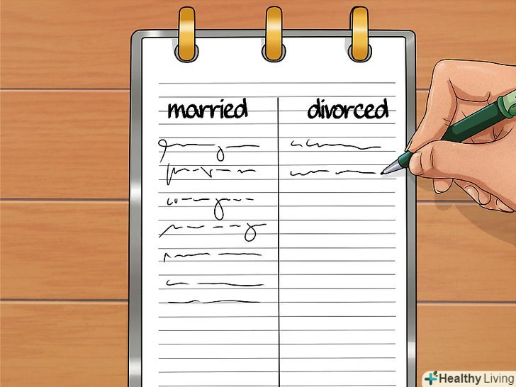 Вивчіть зв'язки всередині сім'ї.складаючи генограмму, потрібно знати, як все у вашій родині пов'язані між собою. Вивчіть союзи родичів, зберіть інформацію про шлюби, розлучення, дітей та інші дані.- Зафіксуйте, хто одружений або заміжня, хто розлучений, хто живе не в шлюбі.