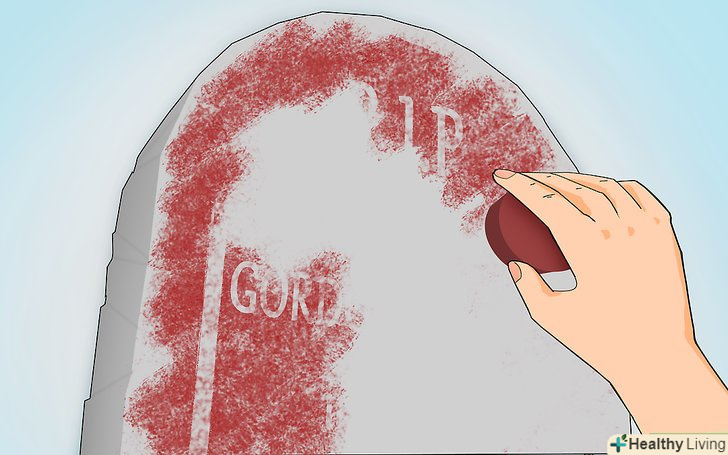 Почистіть могильну плиту.ставтеся з повагою до могильних плит. Деякі з них виглядають краще з ознаками давнини, але, як правило, можна прибрати мох, бруд, пташиний послід або розчавлених комах. Почніть з використання м'якої пензлика, щоб стерти бруд з могильної плити. За допомогою води в пляшечці акуратно зітріть бруд. Все, що вам потрібно, це зробити так, щоб написи і малюнки було краще видно. Ось деякі поради на замітку:- Деякі могильні плити дуже крихкі. Якщо ви помітили сліди руйнування або ерозії, скажіть про це наглядачеві кладовища, перш ніж намагатися відчистити плиту.