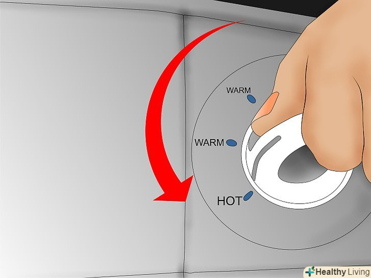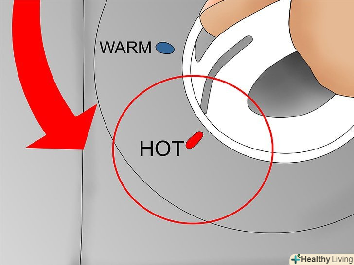 Увімкніть водонагрівач на час завантаження білизни.чим гаряче буде вода, тим ефективніше буде змиватися накопичилося миючий засіб і бруд.- Переконайтеся, що ви знизили температуру до 120 градусів за Фаренгейтом (49 градусів за Цельсієм) або нижче, щоб уникнути опіків, коли закінчите.